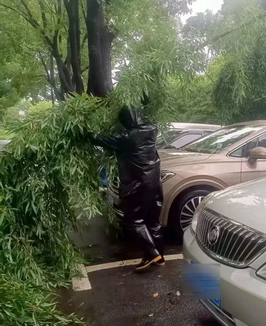 树木倒伏、护栏倒塌是台风天常见险情。嘉定区马陆镇陆家社区第一时间组织专业力量处理倒伏树木,并联合物业部门加大力度全面排查,紧急处理受风雨影响的隐患树木。