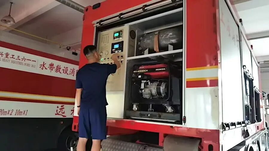 松江区消防救援支队组织多辆消防车组成排涝专业队,分赴市级重点点位区域及下立交、隧道等附近前置驻防。