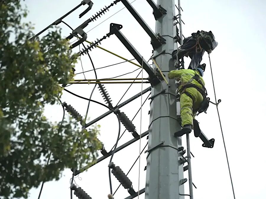 7月30日,金山区吕巷镇金廊公路旁的一处架空线引线发生断线故障,国网上海金山供电公司立即启动应急预案,争分夺秒开展断线修复工作。