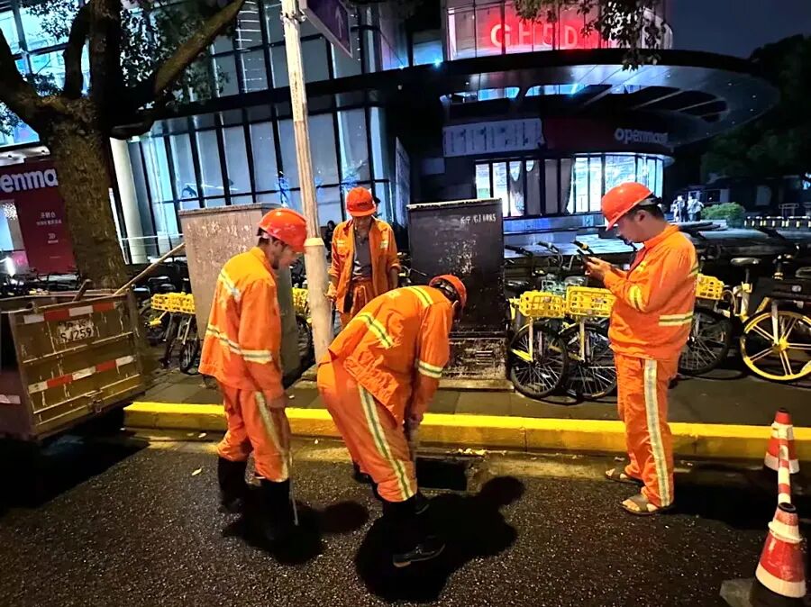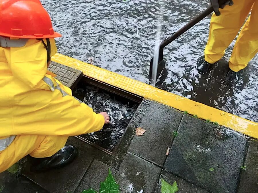 普陀市政养护公司全员上岗开展隐患排查,增加对易积水点位、在建工地的巡视值守,预清理雨水口截污挂篮、加固护栏,落实物资设备。