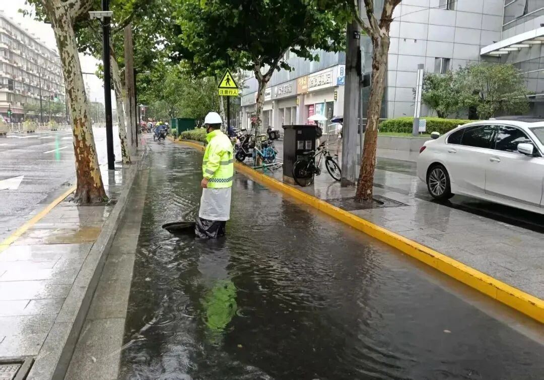 针对凯旋路、定西路、茅台路、玉屏南路、延安西路、番禺路等泵站周边井盖易冲出路段,永达市政安排专人定点观察,一旦发现窨井盖或雨水口盖被顶开,立即上前复位,为过往车辆和行人筑起安全防线。